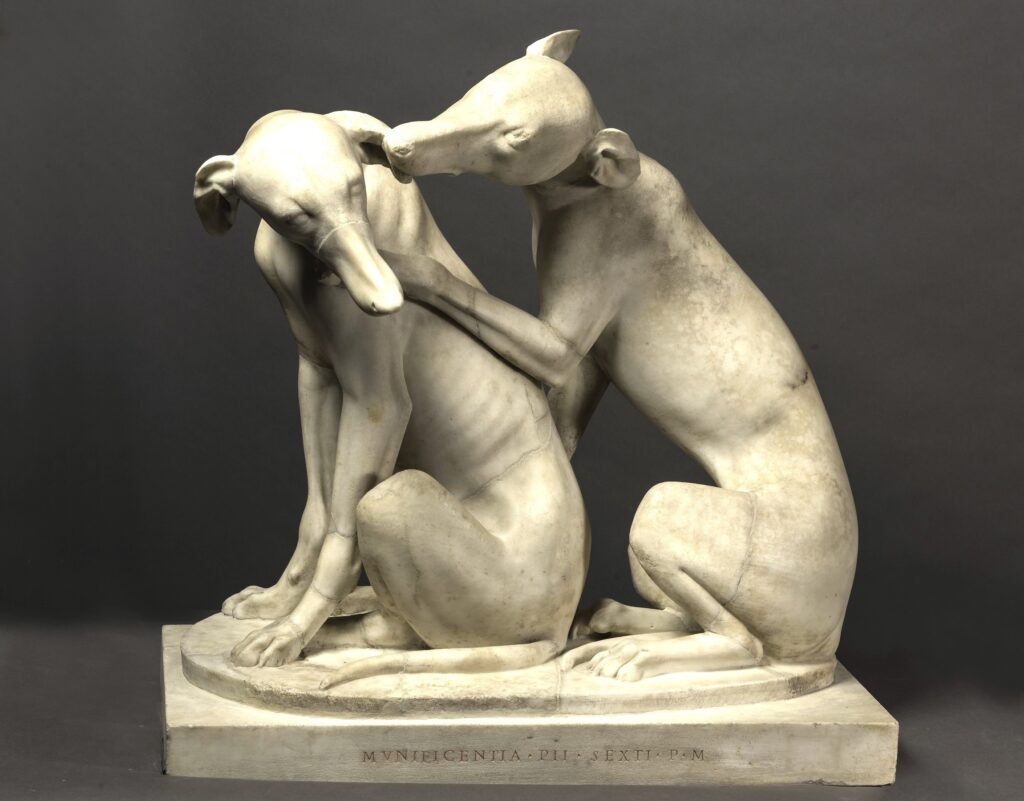 “They appear to be holding hands,” Jones notes, though the hands are broken off. “This is common in funerary reliefs because it’s an important moment in marriage, the joining of the right hands. It’s a tender moment.” He points out other details, especially the lap-counting device, with mechanical dolphins moving at each completion. “This is one of two objects you’ll see in every textbook of Roman art. It was lent by the Vatican.”