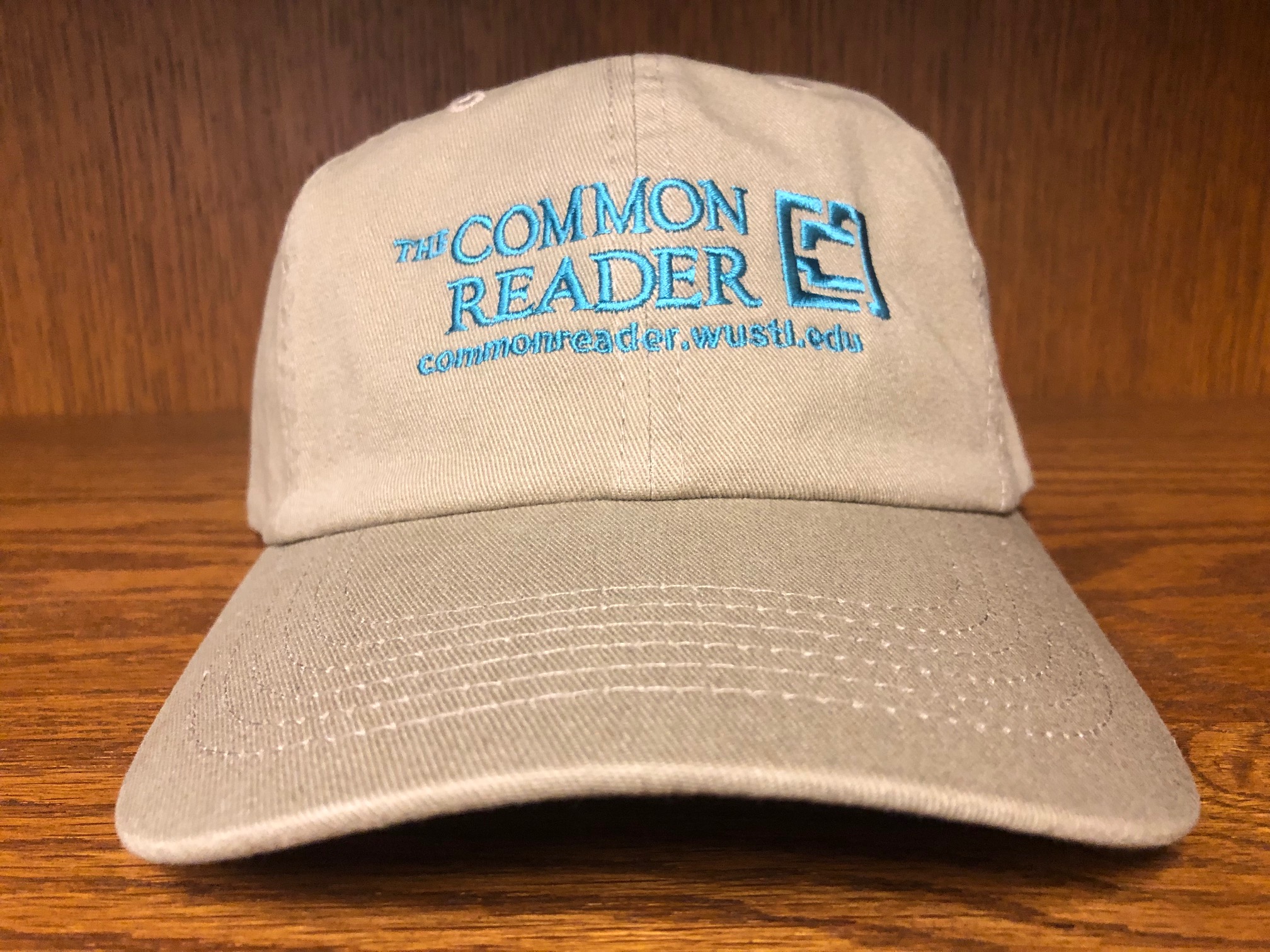 Khaki ball cap with The Common Reader logo and URL.